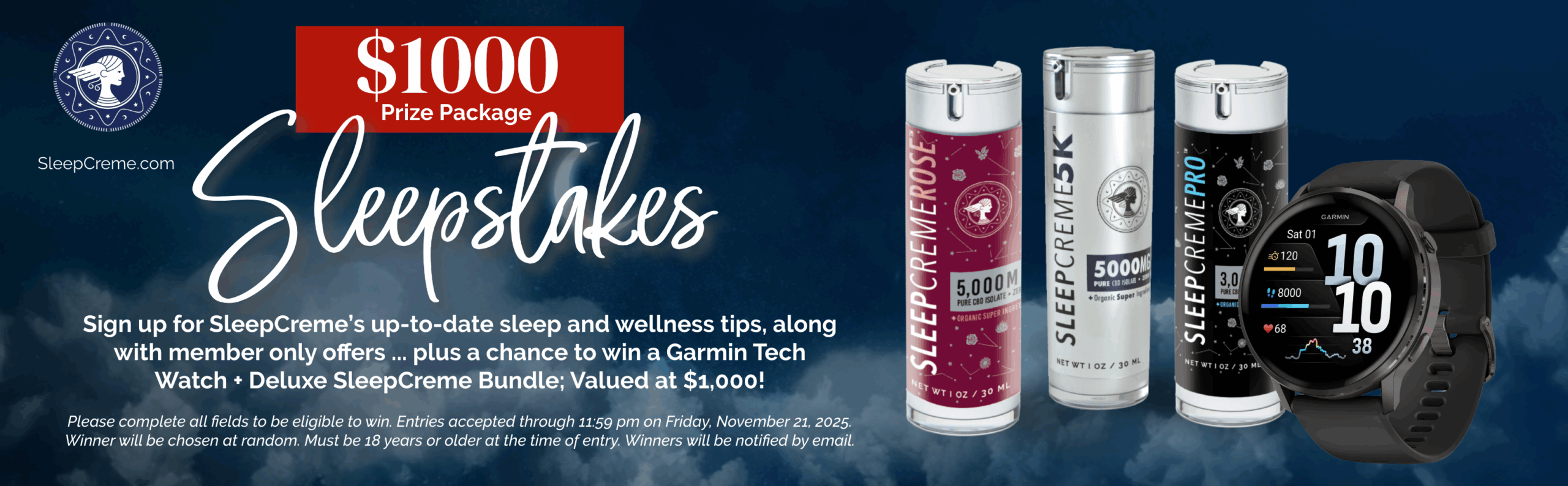 Open to legal residents of the United States who are 18 years of age or older at the time of entry. Void where prohibited by law. Employees, affiliates, distributors, or immediate family members of SleepCreme, LLC are not eligible to participate.
